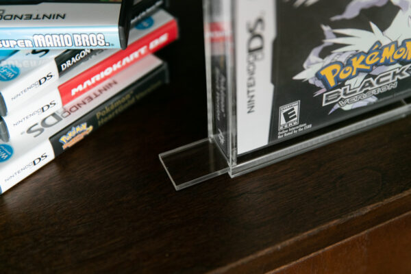Purposefully crafted to hold a Nintendo DS or 3DS game case perfectly, the 3DS/DS Game Case CartVault is constructed of 1/8″ thick clear acrylic. The bottom-mounted slide opening allows a secure method to slide the cartridges in and out.