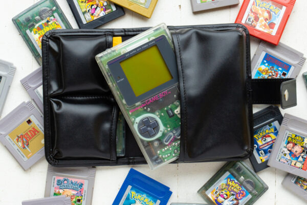 We’ve brought a classic design back for handheld enthusiasts.The BitLounger BitBook DMG has a pocket to hold your favorite original DMG Game Boy as well as 2 pockets that each hold 1 Game Boy game cartridge.