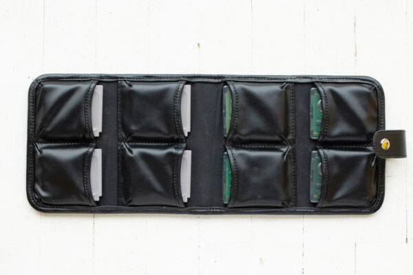 We’ve brought a classic design back for handheld enthusiasts. The BitLounger BitBook OCHO has 8 pockets that each hold 1 Game Boy or Game Boy Color game cartridge.