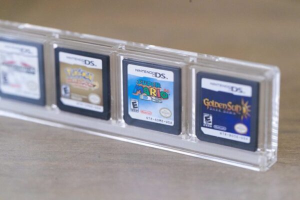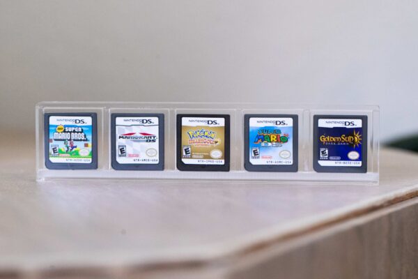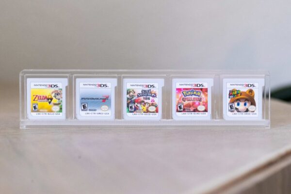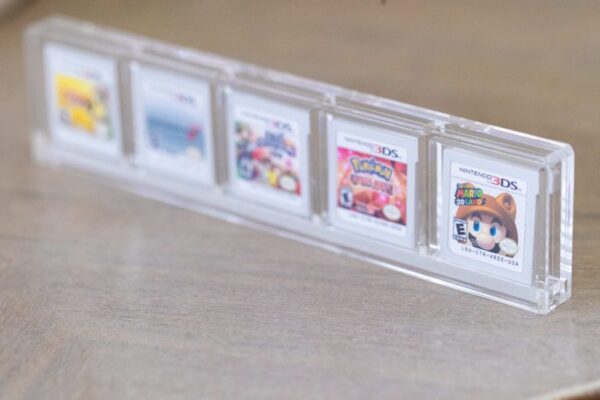 The BitLounger 3DS/DS Game Cartridge CartVault 5 Game Display Case is crafted with 1/8″ clear acrylic and a bottom slide opening to store your favorite Nintendo 3DS and DS games.