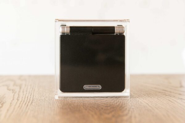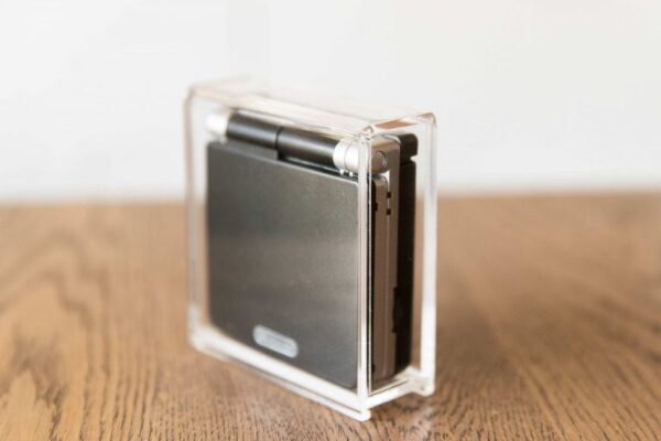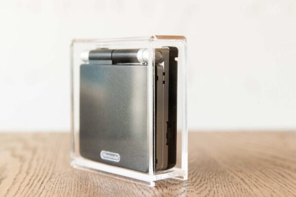 Purposefully crafted to hold a Game Boy Advance SP system, the BitLounger Game Boy Advance SP CartVault is constructed of 1/8″ thick clear acrylic. The bottom-mounted slide opening allows a secure method to slide the system in and out.