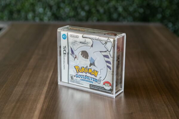 Purposefully crafted to hold a Pokemon HeartGold or Pokemon SoulSilver Nintendo DS game box perfectly, the BitLounger HGSS Game Box CartVault is constructed of 1/8″ thick clear acrylic. The bottom-mounted slide opening allows a secure method to slide the box in and out.