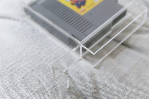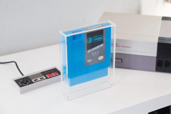 Purposefully crafted to hold a NES game cartridge perfectly, the BitLounger NES Cartridge CartVault is constructed of 1/8″ thick clear acrylic. The bottom-mounted slide opening allows a secure method to slide the cartridges in and out.