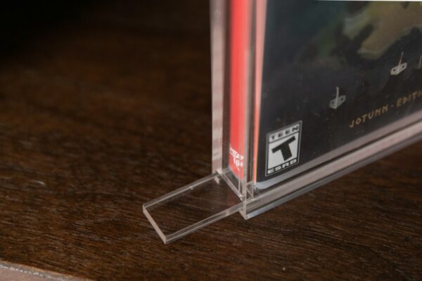 Purposefully crafted to hold Switch game case perfectly, the Switch Game Case CartVault is constructed of 1/8″ thick clear acrylic. The bottom-mounted slide opening allows a secure method to slide the cartridges in and out.